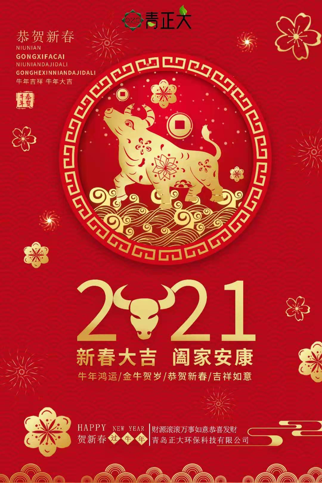 值新春佳節(jié)到了之際,青島正大環(huán)保科技有限公司全體員工恭祝大家新年快樂,健康幸福!